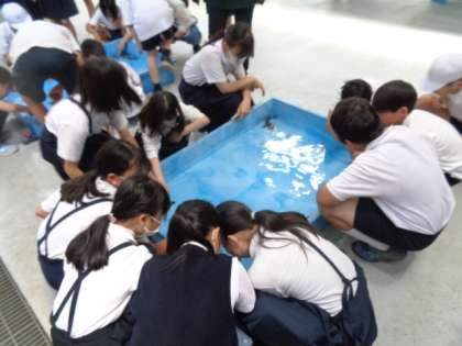 水産技術センターに見学に行きました。