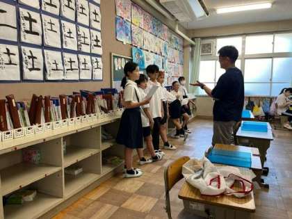 国語の学習で、他の学年の先生にインタビューをしました。低学年の子どもたちのためにできることを探すため、いろいろと質問をしました!