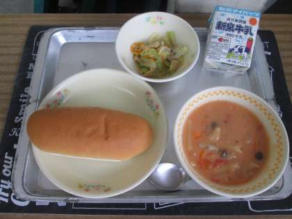 6月17日(月) 給食 公開日 2024/06/17 更新日 2024/06/17 給食 コッペパン チキンのトマトクリームペンネ 枝豆サラダ 牛乳 ペンネは、万年筆の先のような形のパスタです。 今日は、トマトと牛乳やチーズと一緒に煮込みました。 サラダは夏が旬の枝豆を使い、レモン汁を入れたさっぱり味のドレッシングにしました。
