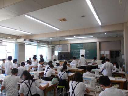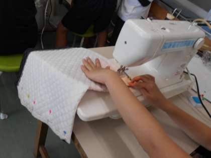 ミシンで「ナップザック」づくりに取り組んでいます。