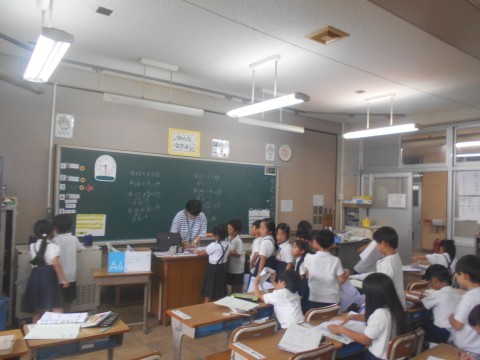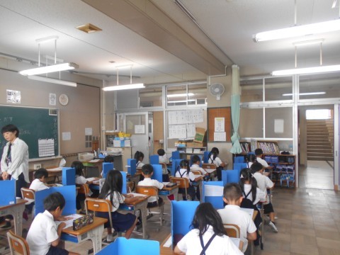 算数の授業です。文章を読んで「式」を立てています。2学期に入って、文書も少し難しくなってきました。