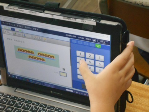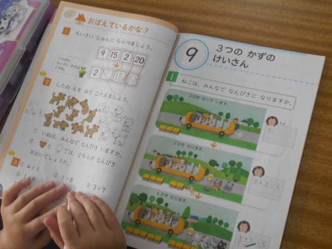 算数の授業です。「おぼえているかな?」これまでの復習取り組んでいます。