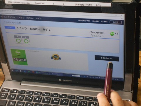 算数の授業です。くりさがりのあるひき算の学習に取り組んでいます。