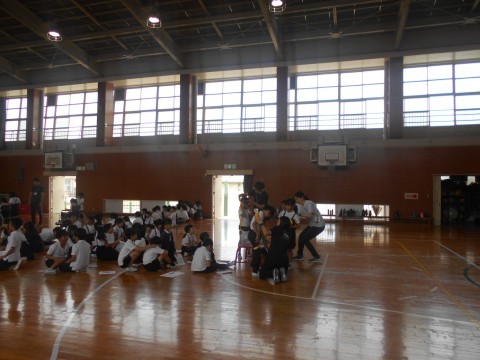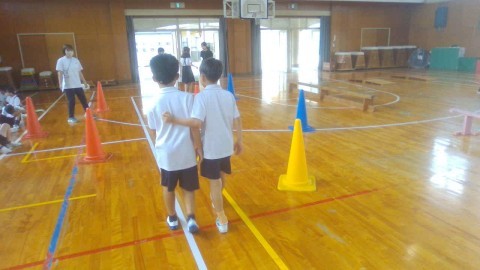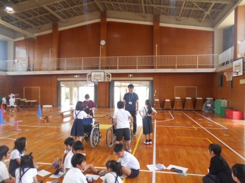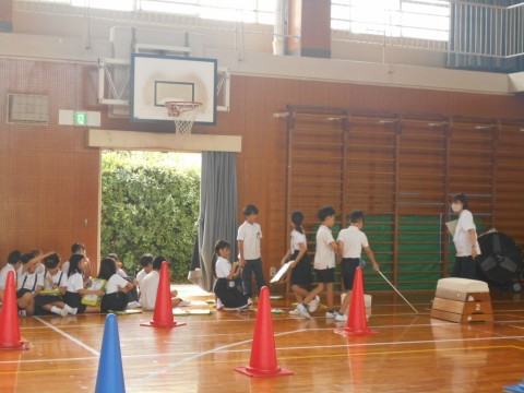 3年生の総合的な学習の時間で、車いす体験、白杖体験、高齢者疑似をしました。