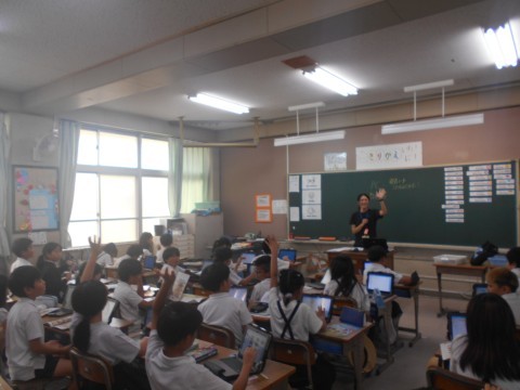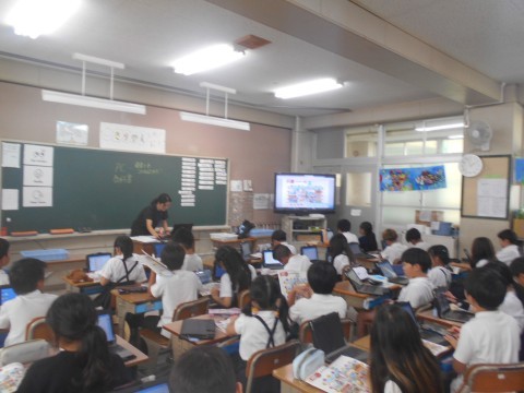 国語の授業です。「ちいちゃんのかげおくり」の学習です。ちいちゃんがひとりぼっちになったその後の場面を読み取っています。