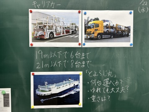 作られた車はどのように運ばれるのか、資料やインターネットで調べています。