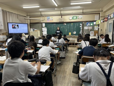 方言クイズをして、自分は方言派か共通語派かを意見を伝え合っていました。