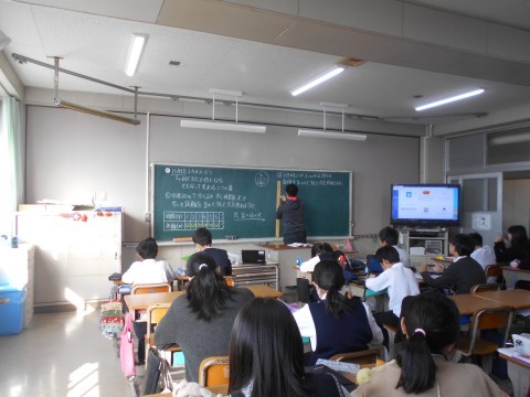 算数の授業です。新しい学習に向け,5年生で学習した「比例」について復習しています。