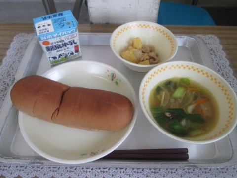 今日は具沢山の豚汁でしたね。豚汁だけで7種類の食材が入っていましたよ。給食ではいろいろな食材が使われているので、何が入っているのか確かめながら食べるといいですね☆
