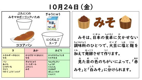 ひんやり肌寒くなりましたね。しっかり食べて病気に負けない体をつくりましょう。
