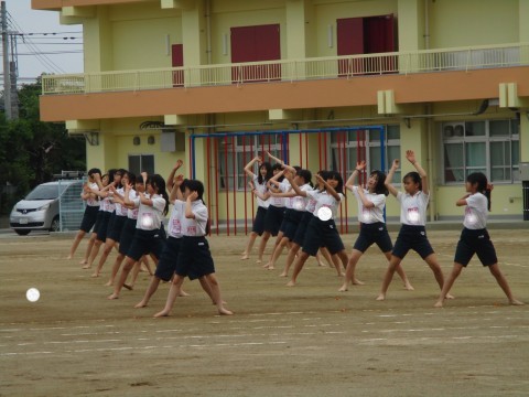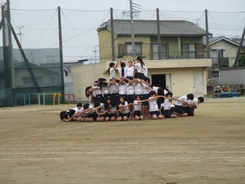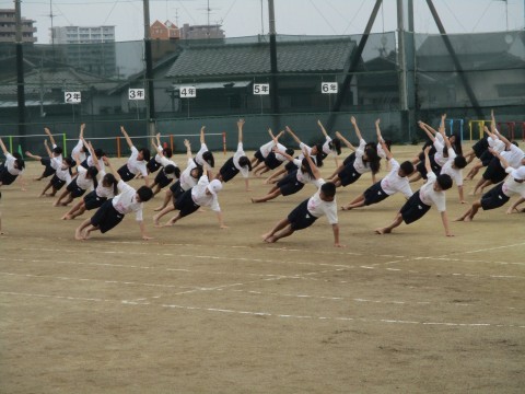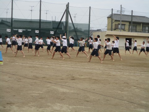 団体演技の練習です。子どもたちは気合が入っています。当日の演技をお楽しみにしていてくださいね。