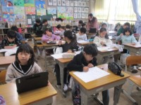 「目の前は青空」の教材を通して、友だちと助け合うとどんな気持ちになるかを考えています。子どもたちは、いろんな場面で助け合いは経験しています。そんな経験を思い出して考えます。