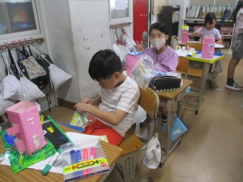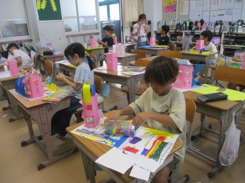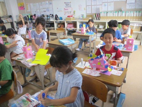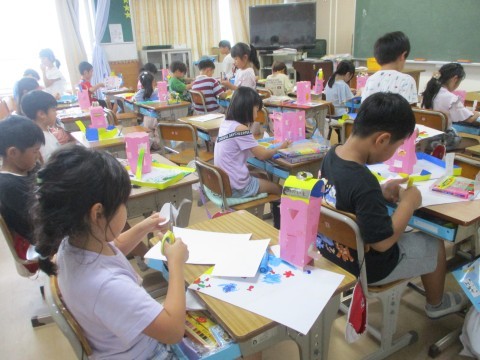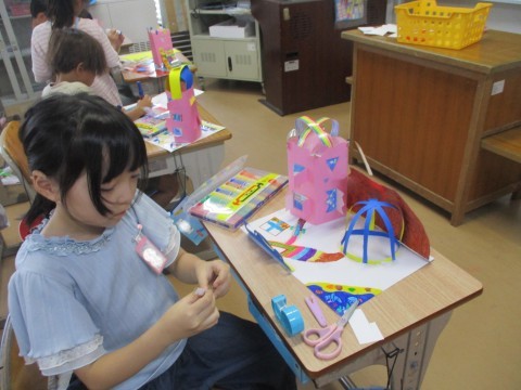 「まどのあるたてもの」を制作中です。楽しんで取り組んでいます。