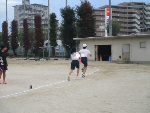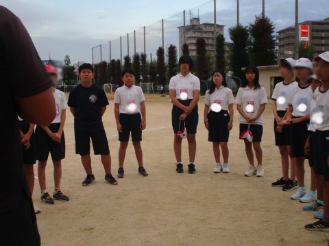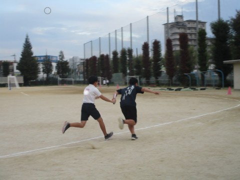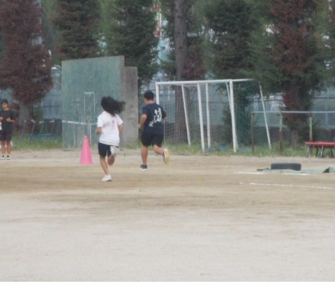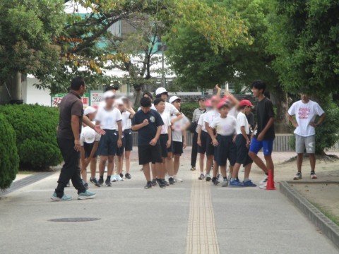 陸上競技の部には、100mと400m リレー(4×100m)の2種目があり、リレーは小・中学生による混成チームで出場します。合同練習では、津久野中学校の陸上競技部の先生や先輩に短距離のスタート練習やリレーのバトン練習を中心に指導していただきました。校区の代表選手としての自覚も高まったのではないでしょうか。