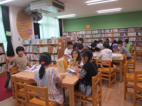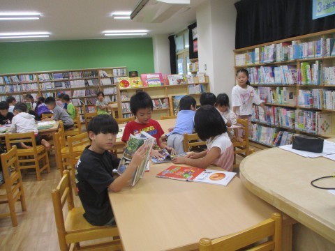 静かに読書をしています。自分の読みたい本は見つかったかな?