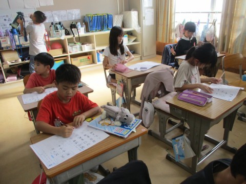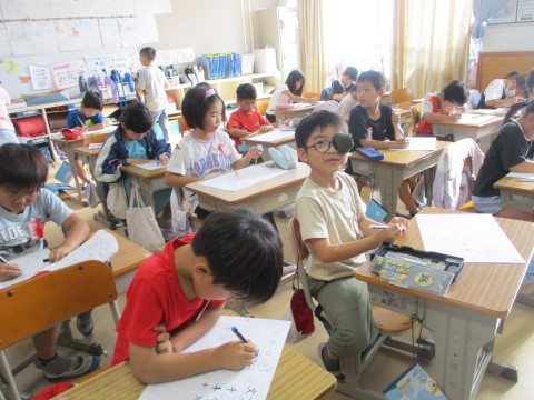 書き方えんぴつをとフェルトペンを使って,ていねいに書いています。
