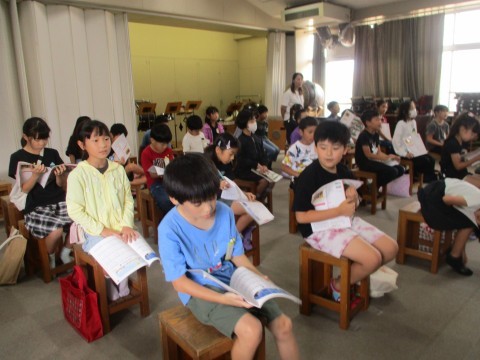 今まで習った曲を先生にリクエストして,曲をかけてもらい歌っています。曲にのって上手に歌っています。