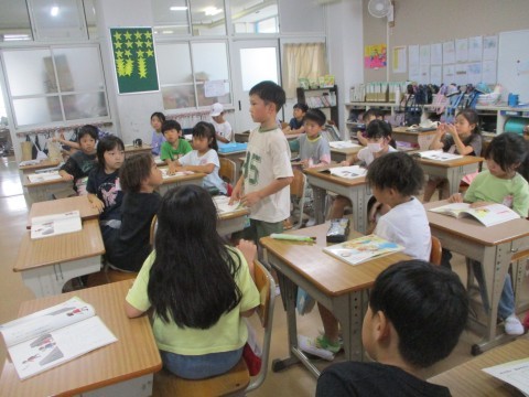 「やめなさいよ」の教材を読んで,よくないと思うことを見たら,どうすればいいのかを考えます。さて,どうすればいいのかな?