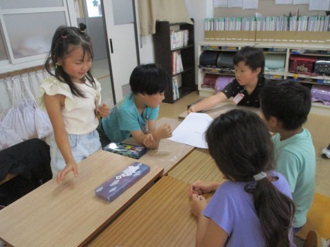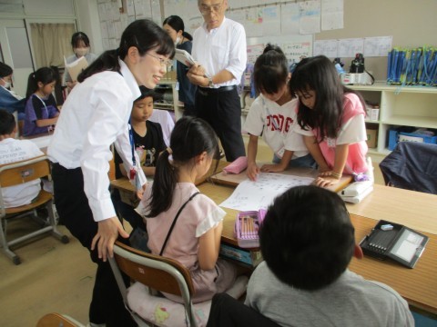 「なかまのことばとかん字」の学習で,ことばの仲間分けをしています。グループで協力して取り組んでいます。