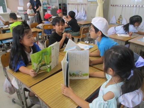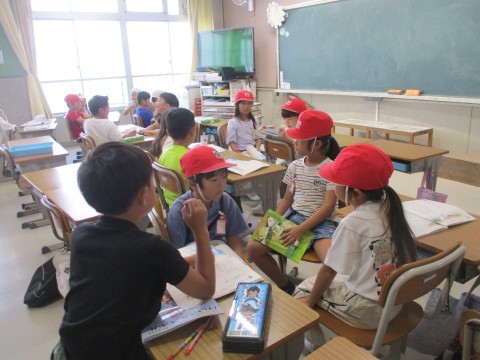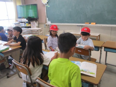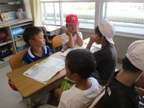 「くじらぐも」を役割分担を決めて,音読の練習をしています。