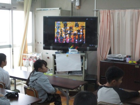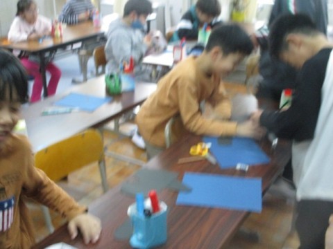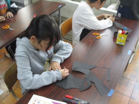今日の朝の会では「お化けマンション」の工作をしました。みんなでマンションの作り方や,ハロウィンならではのキャラクターも