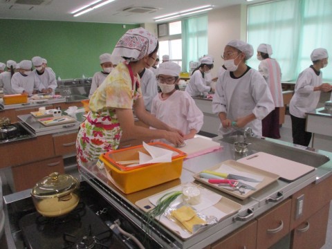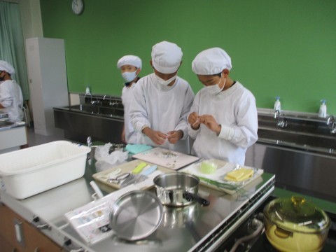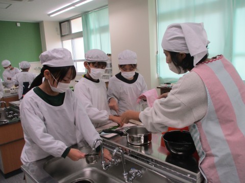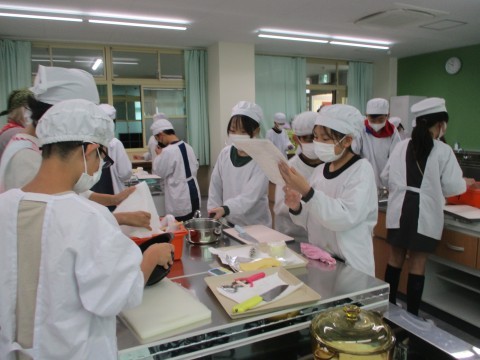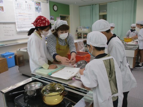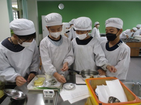 今日は,調理実習で,ごはんとみそ汁を作っています。グループで協力しましょう!