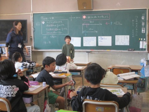 自分の考えを発表しています。友だちの意見をしっかり聞く態度は素晴らしいです。
