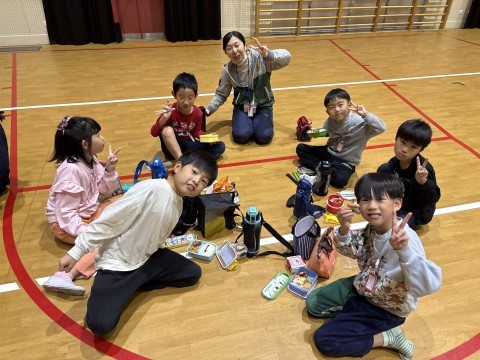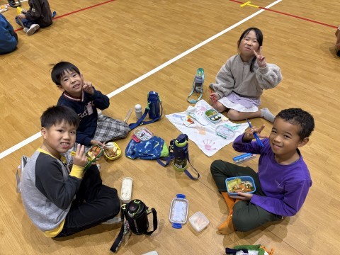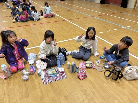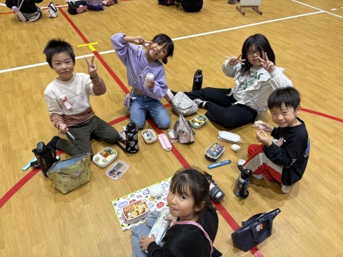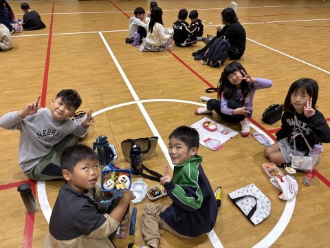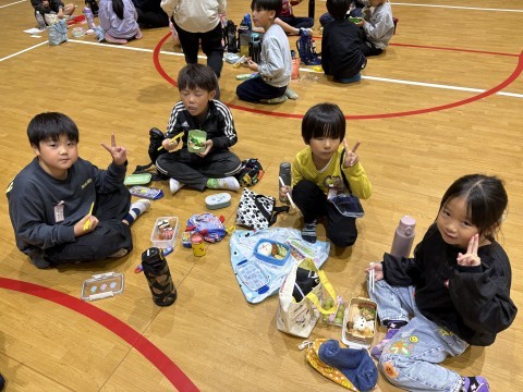 今日は,雨で校外学習が延期となりましたが,作ってもらったお弁当を1・2年生で一緒に食べました。