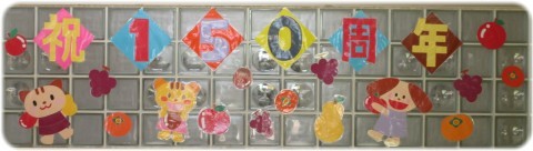 地域のサポーターさんが,いつも季節ごとの素敵な掲示をしてくれています。今月は,150周年の式典があるので,「祝150周年」を入れていただきました。ありがとうございました。