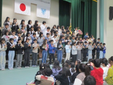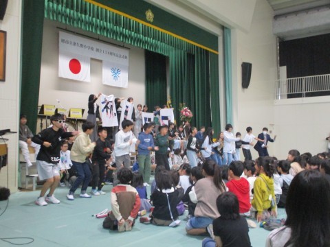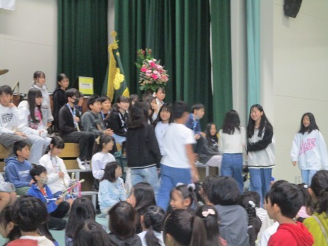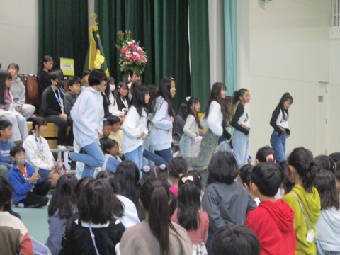 6年生 「キセキ」「見よ,勇者は帰りぬ」「校歌」のメドレーとダンス