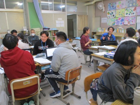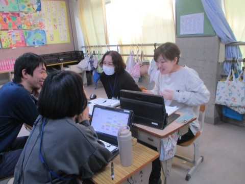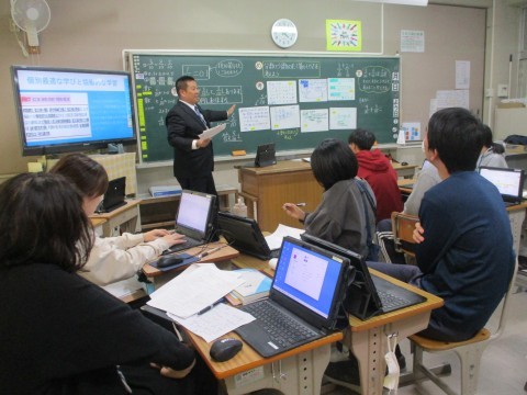 3年生の研究授業後、研究討議会を行いました。先生方が各グループに分かれ,良かった点,問題点や改善すべき点,提案について討議と発表を行いました。また、正道校長先生に来ていただき,授業の改善点や研究テーマにそった指導,助言をいただきました。明日からの授業改善に生かしていきます。