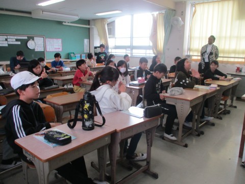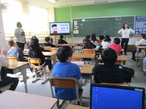 楽しく歌を歌っています。今日の学習は,自分のお道具箱を紹介します。