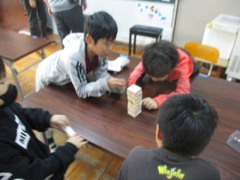 9枚の数字カードを順番にめくったり,ジェンガではいかに崩さないようにジェンガを進めていくのかを考えていくことが出来ました。
