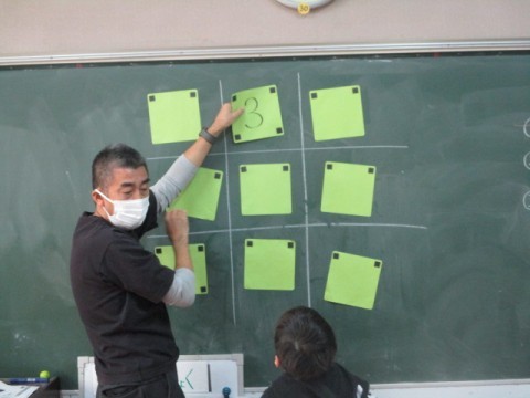 今日の朝の会では,9枚のカードを使って,ナンバーナインというゲームと,ジェンガや給食クイズをしました。