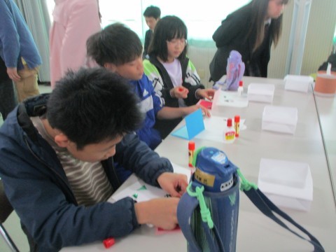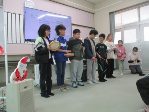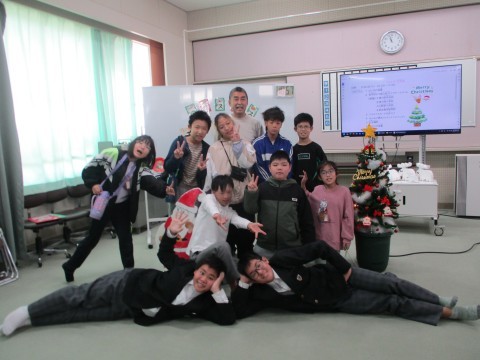 津久野中学校でクリスマス交流会が行われました。津久野校区の上野芝小学校、家原寺小学校、百舌鳥支援学校のお友だちが津久野中学校の先輩たちが計画してくれたクリスマス交流会を楽しみました。自己紹介,アピールタイム,クリスマスカードづくりをしました。最後には、みんなでクリスマスソングを歌いました。。