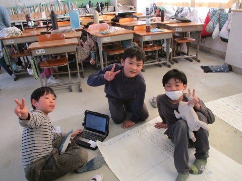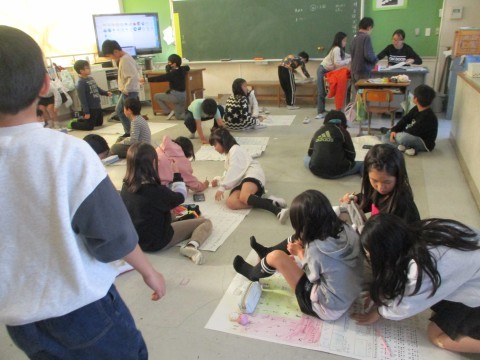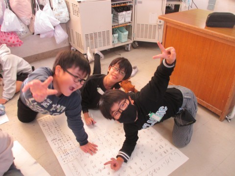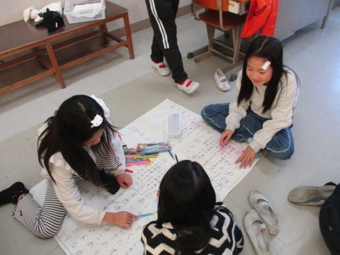 総合学習で調べた「介助犬」や「ユニバーサルデザイン」のことなど,自分たちで調べたことを新聞にまとめています。