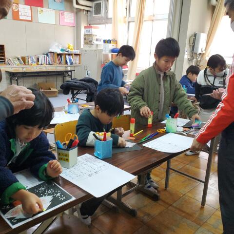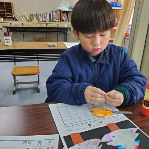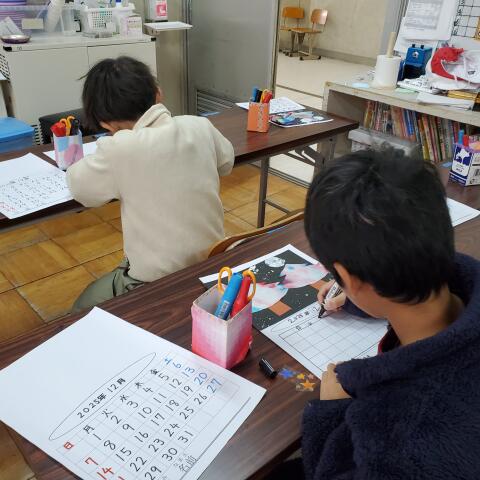 今日は昨日滲み絵をしたものを使ってカレンダー作りをしました。