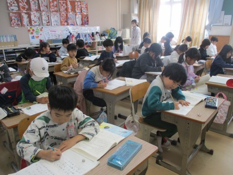 「みきのたからもの」の学習です。様子を思い浮かべながら音読します。