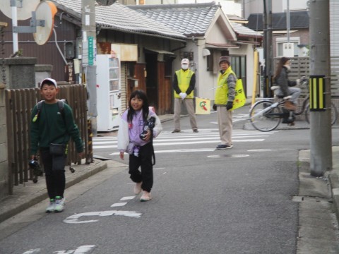 今日も元気に登校しています。寒い中,子どもたちの見守りありがとうございます。