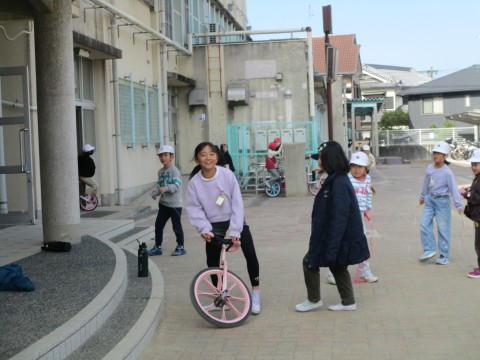 縄跳びや一輪車,ドッチボールを楽しんでいます。