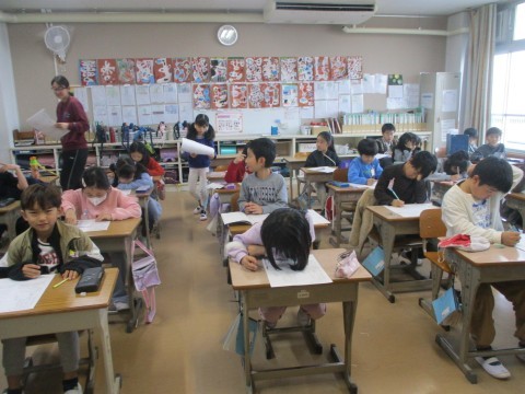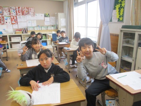 自習で算数プリントに挑戦!とても賢くがんばっています。