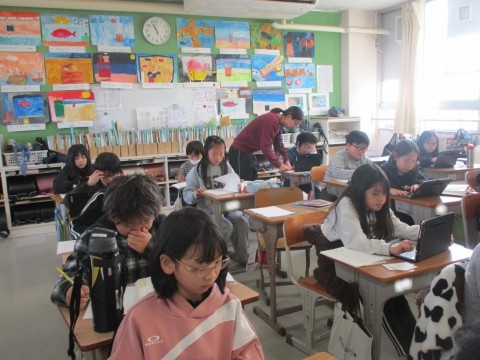「もしものときにそなえよう」の学習で,調べたことや自分の考えをまとめています。大雨の時や地震の時など自分が関心をもったことについて調べたようです。
