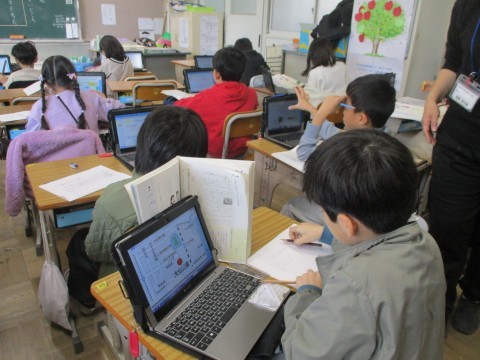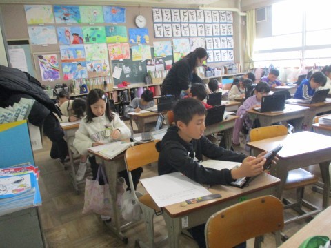 「わたしの町のよいところ」の学習で,紹介したいものを文で表しています。