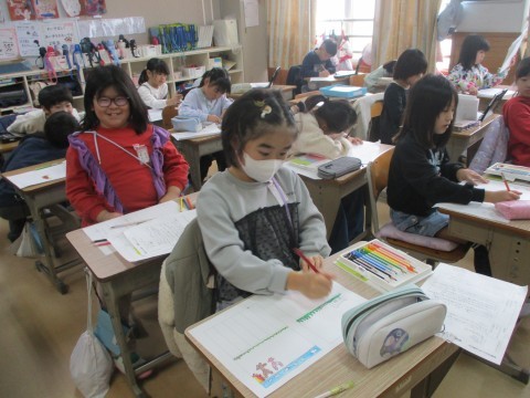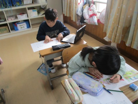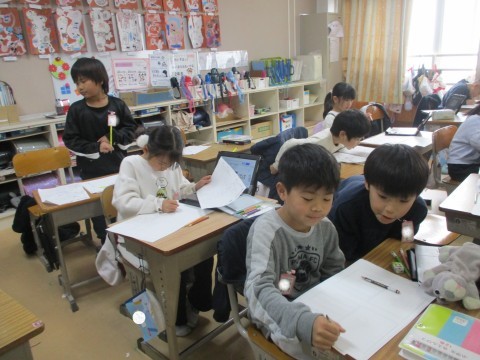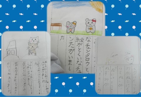 「おはなしのさくしゃにんまろう」の学習で,自分が作者になってお話をつくっています。どんなお話ができるか楽しみです。