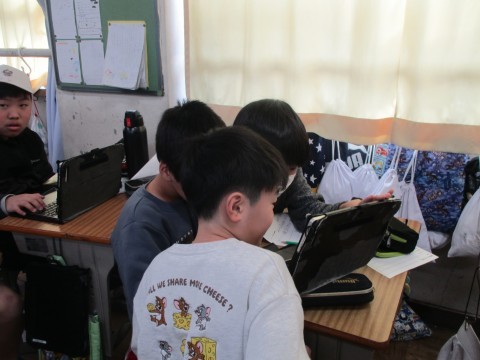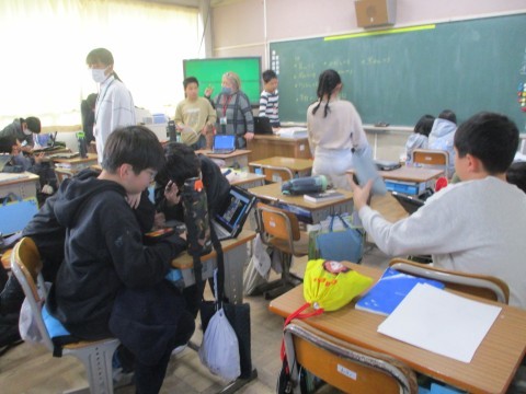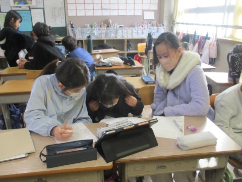 自分の好きな絵画を選んで,自分なりに解釈して,勝手にストーリーをつくります。みんなが「本当にありそうだなぁ」と思うことを考えます。発表の練習をしている人もいます。