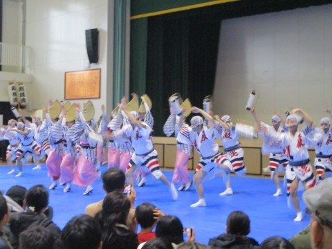 イベントの締めくくりには,踊り手の方に教えていただいた阿波踊りを,参加者全員で楽しく踊りました。手拍子と笑顔が広がり,体育館は一体感に包まれました。初めての動きに戸惑いながらも,みんなで踊る姿はとても微笑ましく,忘れられない思い出となりました。