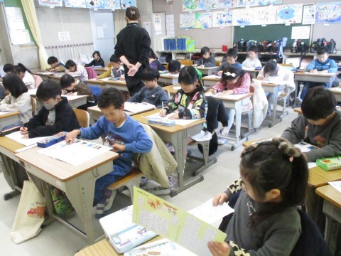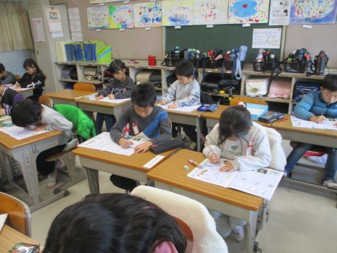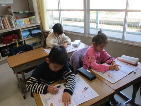 1年生は,落ち着いた雰囲気の中,カタカナの練習をしています。