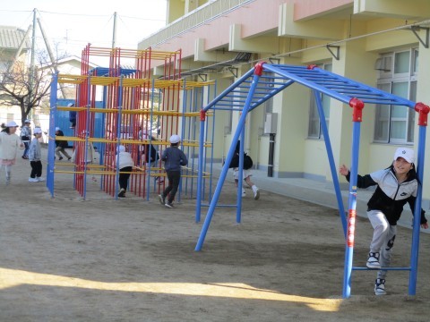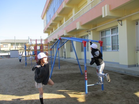 天気がいいので運動場で遊ぶのは,気持ちがいいです。
