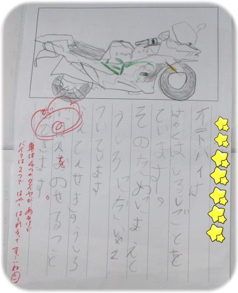 大好きなオートバイの絵を上手に描けました。とてもかっこいいです。