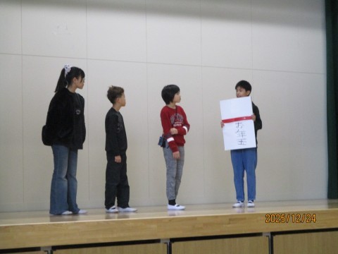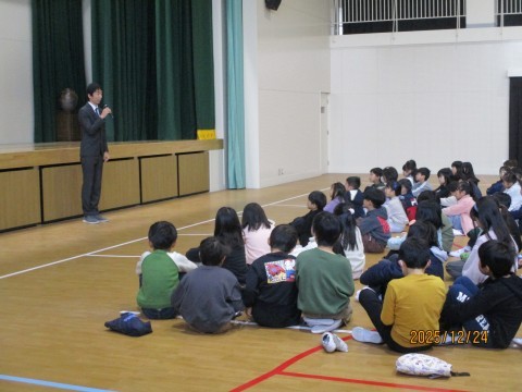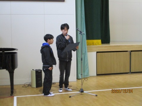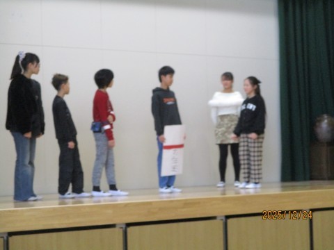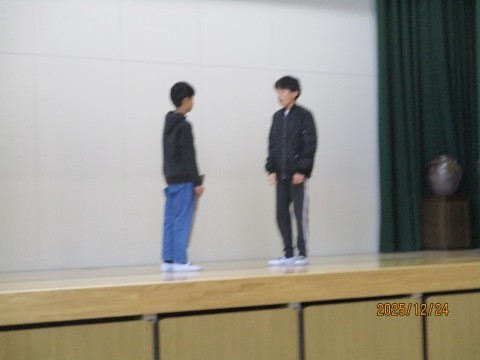 代表委員会からは,「お金の使い方」についての劇をし,みんなに気をつけるよう伝えました。生徒指導の先生からは,冬休みにの生活で,3つの気をつけることのお話がありました。また,お家でもお子さんと何に気をつけて冬休みを過ごすか,お話してみてください。
